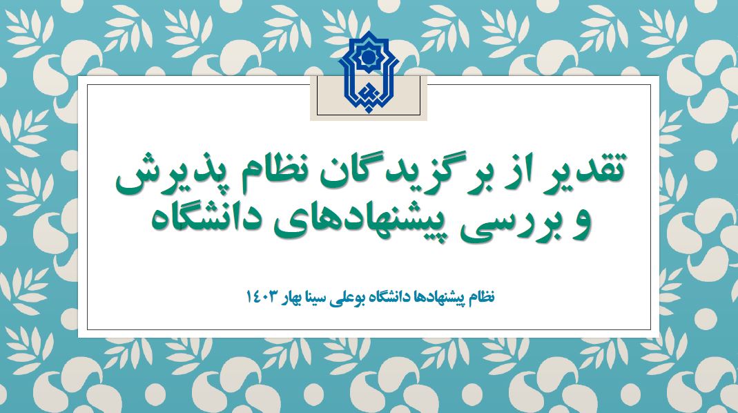 نظام پیشنهادهای دانشگاه در سال جدید نیز از دریافت پیشنهادهای تمامی اعضای هیات علمی، کارکنان، دانشجویان و سایر مخاطبان دانشگاه استقبال می کند.