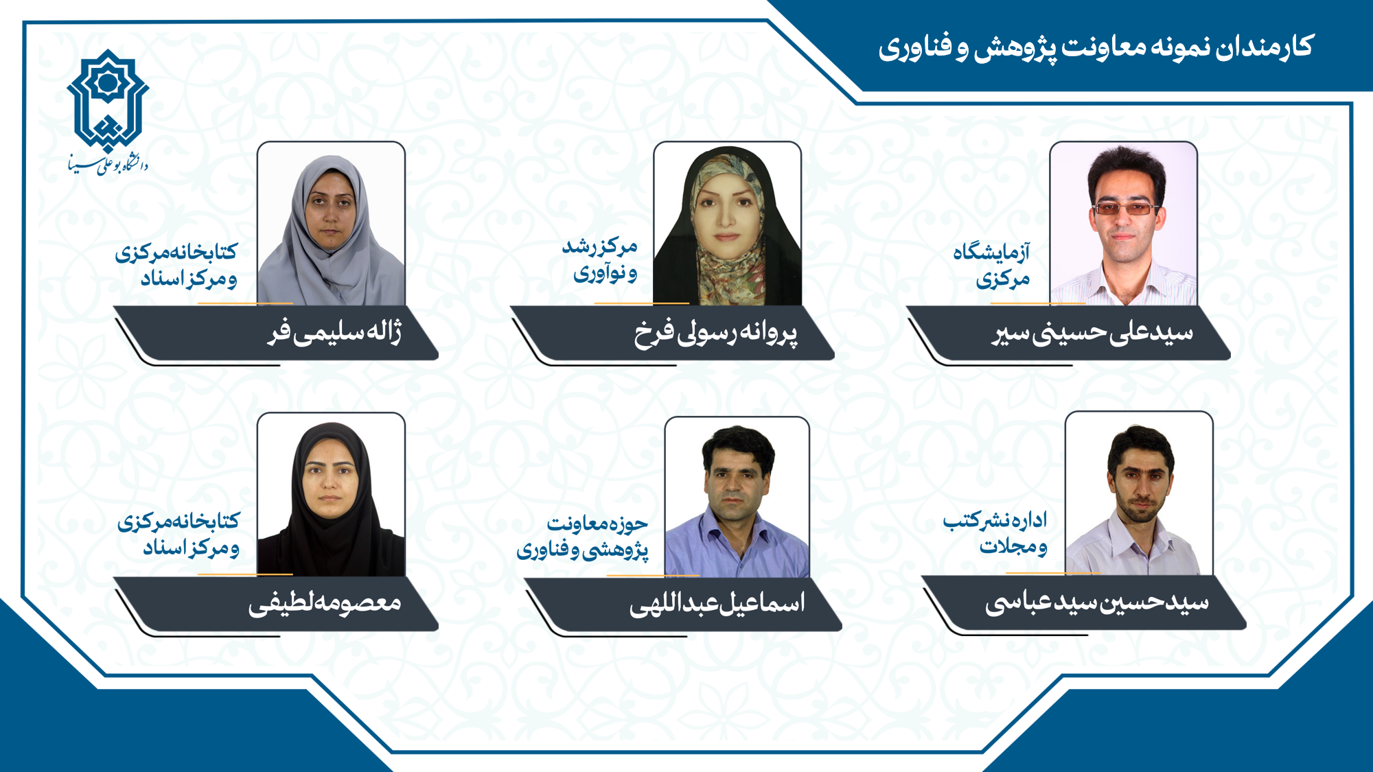 با کمال افتخار اعلام میداریم جمعی از همکاران ارزشمند این مجموعه به پاس تعهد، تلاش صادقانه و نقشآفرینی مؤثر در پیشبرد اهداف سازمان، به عنوان کارمندان نمونه برگزیده شدهاند.